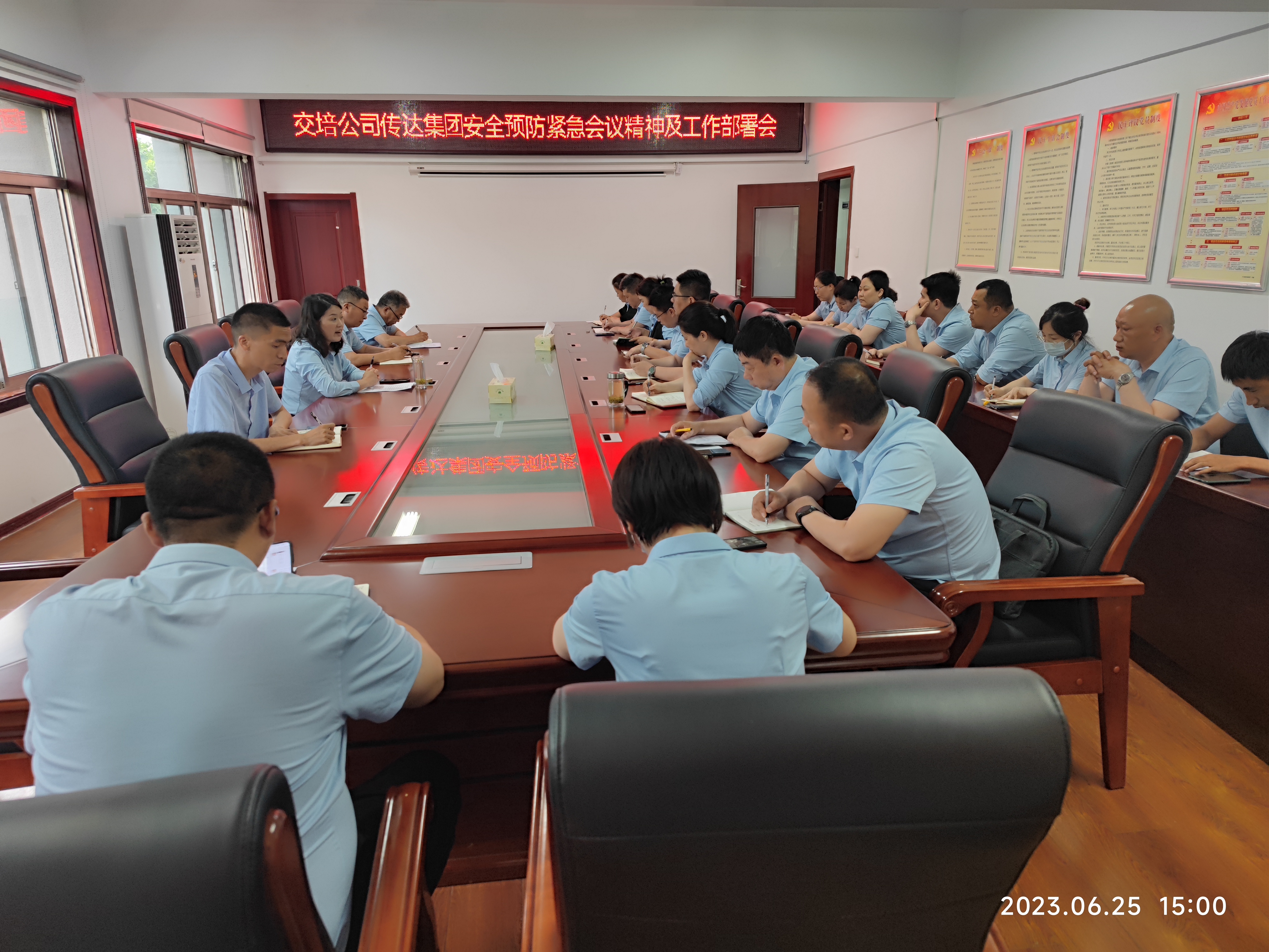 6月25日,交培公司召开安全工作会议,公司领导班子及全体中层管理人员参加,会议由公司党委书记、总经理李霞主持。