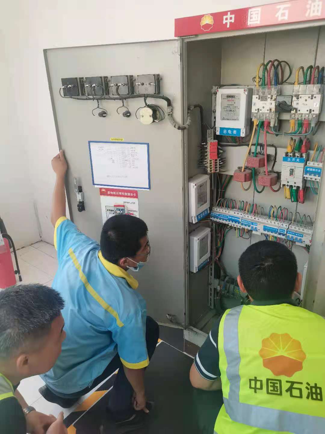 聊城第11加油站刘站长对考察组一行的到来表示了欢迎。该站的安全用电智能集成系统安装于2019年,至今已安全运行两年多的时间。刘站长首先介绍了“一二三安全用电智能集成系统”设备在加油站的安装和实际使用情况;随后带领考察组参观了装有安全用电智能集成系统的生活区域、办公区域及油气回收装置配电间等场所;最后双方针对系统在安装、维护和试验等方面问题进行了技术交流。