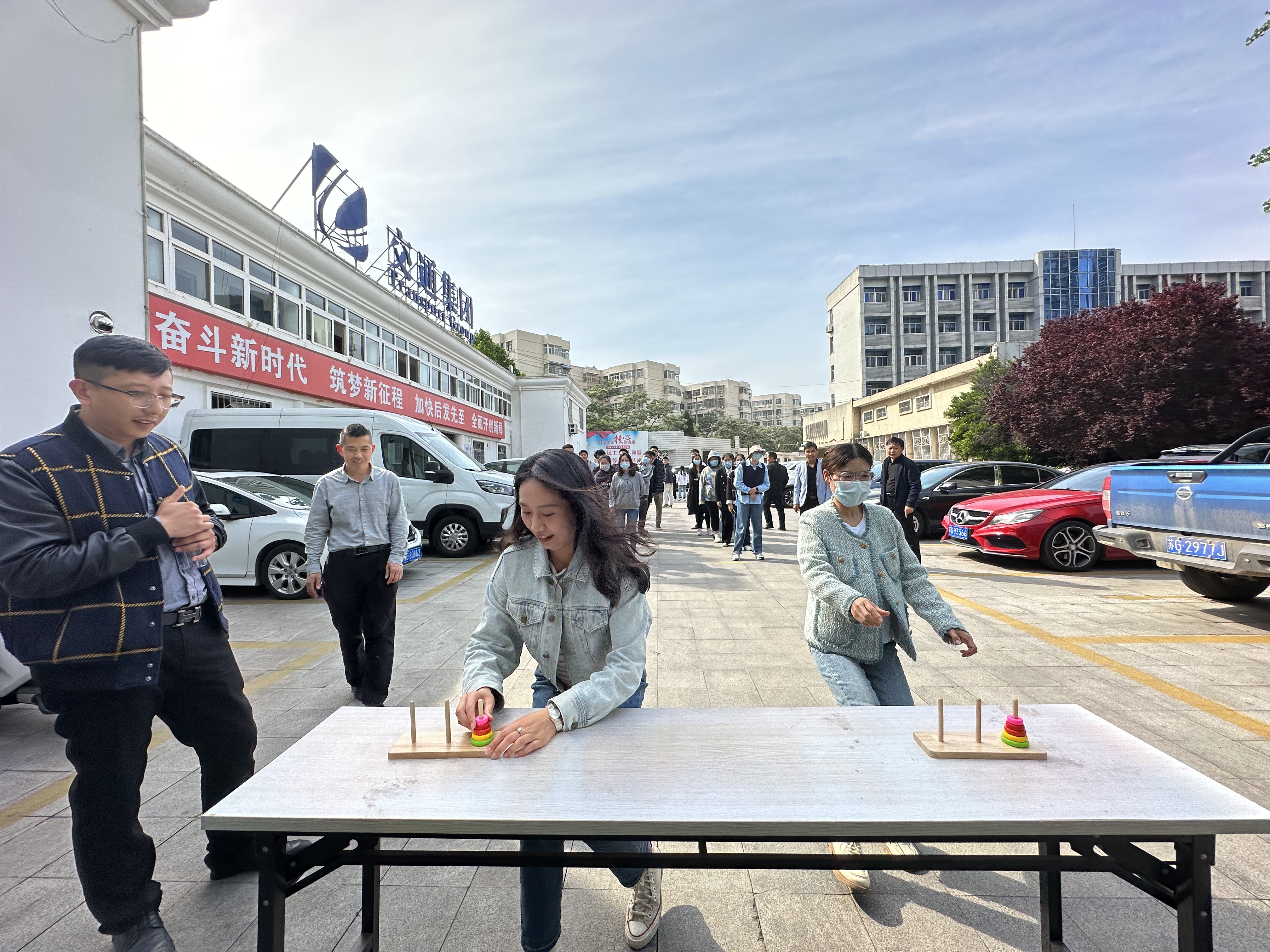 为丰富比赛的形式内容,本次主题活动分为叠汉诺塔团队接力赛、你比划我来猜和沙包投掷积分赛,采用名次赋分的形式,积分最高的队伍获胜。本次活动不仅是团队协作的比拼,更是智慧和体力的角逐,在欢声笑语中,大家你追我赶地奔跑着,互相勉励、加油鼓劲。在叠汉诺塔团队接力赛中,一块块彩色的圆盘穿梭于青年们的巧手间;在你比划我来猜进行时,无声表演的默契配合“笑料”百出;在沙包投掷积分赛中,一个个沙包在空中滑出一道道美丽的弧线……