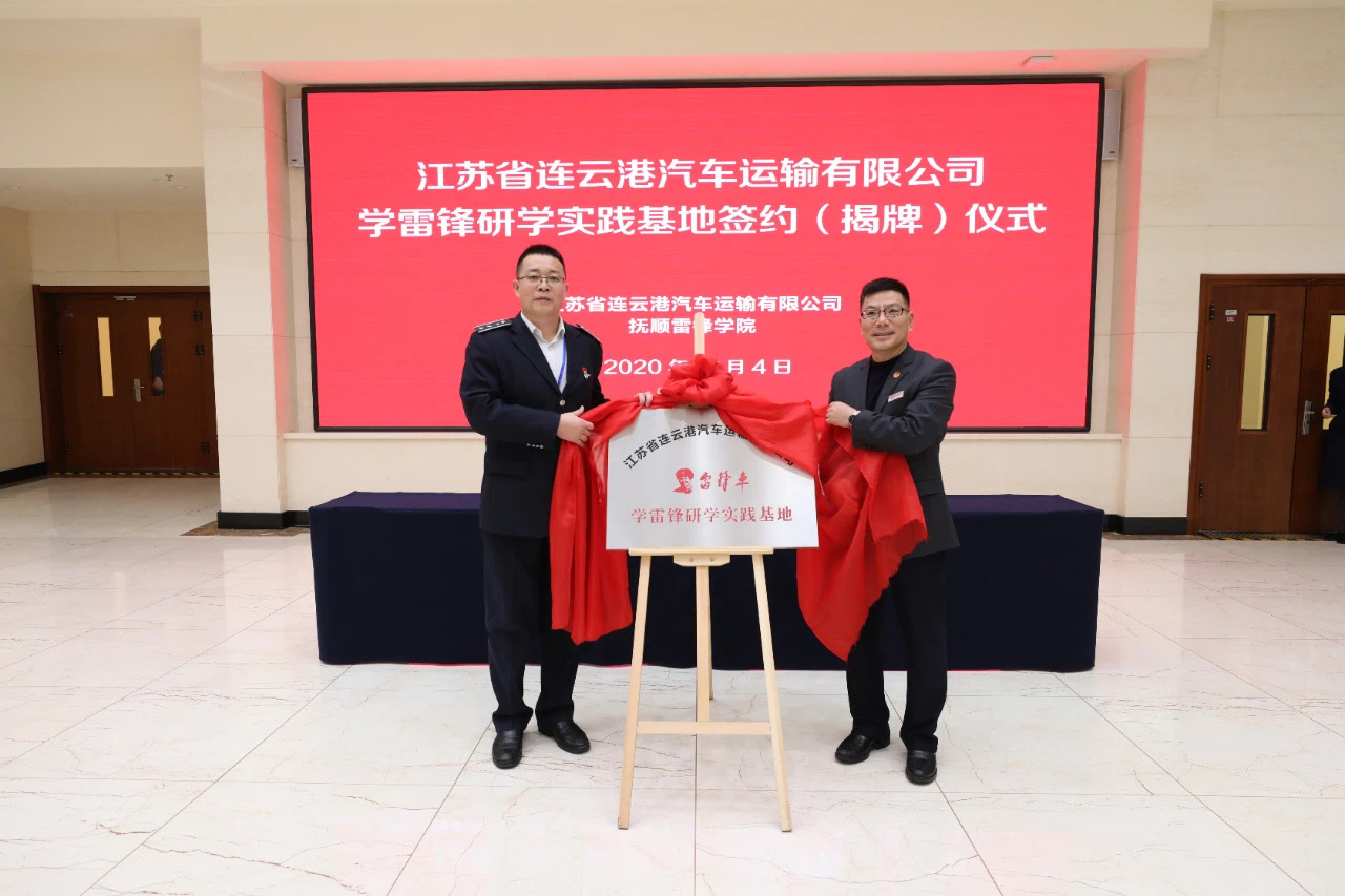 12月4日,连云港市“雷锋车”组在辽宁与抚顺雷锋学院举行学雷锋研学实践基地签约(揭牌)仪式。抚顺雷锋学院党组成员、副院长陈锡德,新浦汽车总站党支部书记、站长王平,新浦汽车总站党支部副书记、工会主席权太琦及相关领导出席仪式。