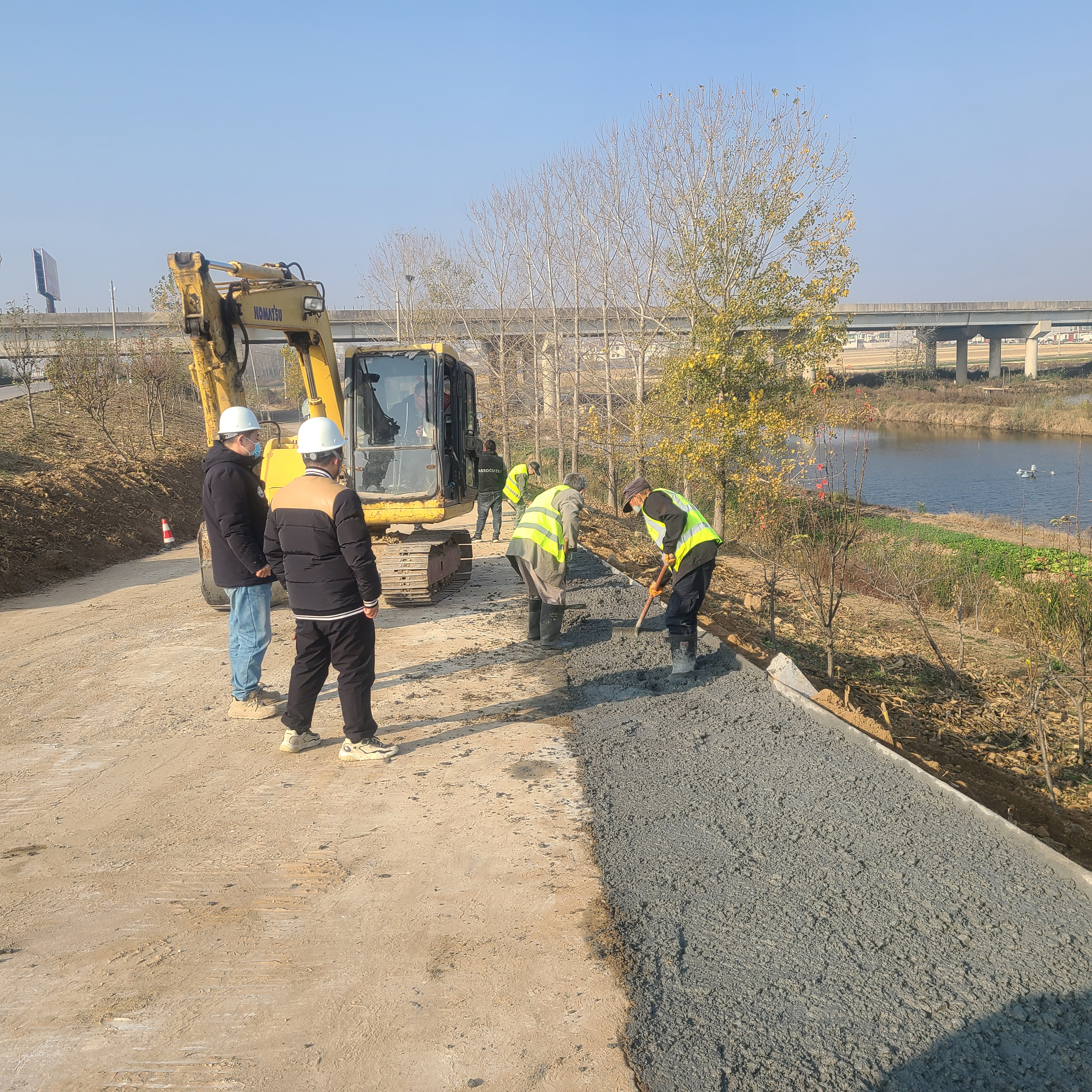 入秋以来,由交通爱体育app最新版下载,爱体育(中国)负责的新沭河堤顶道路提标工程左堤道路施工进展迅速,全面开展了基槽开挖、路基土回填、旧路面铣刨等施工内容。现场热火朝天,有条不紊。机声隆隆,施工车辆进进出出,施工机械摩肩接踵,百余名施工人员各司其职、相互协作。目之所及,处处是如火如荼的火热气氛,工人们全力以赴抢抓工期的施工场景令人振奋。